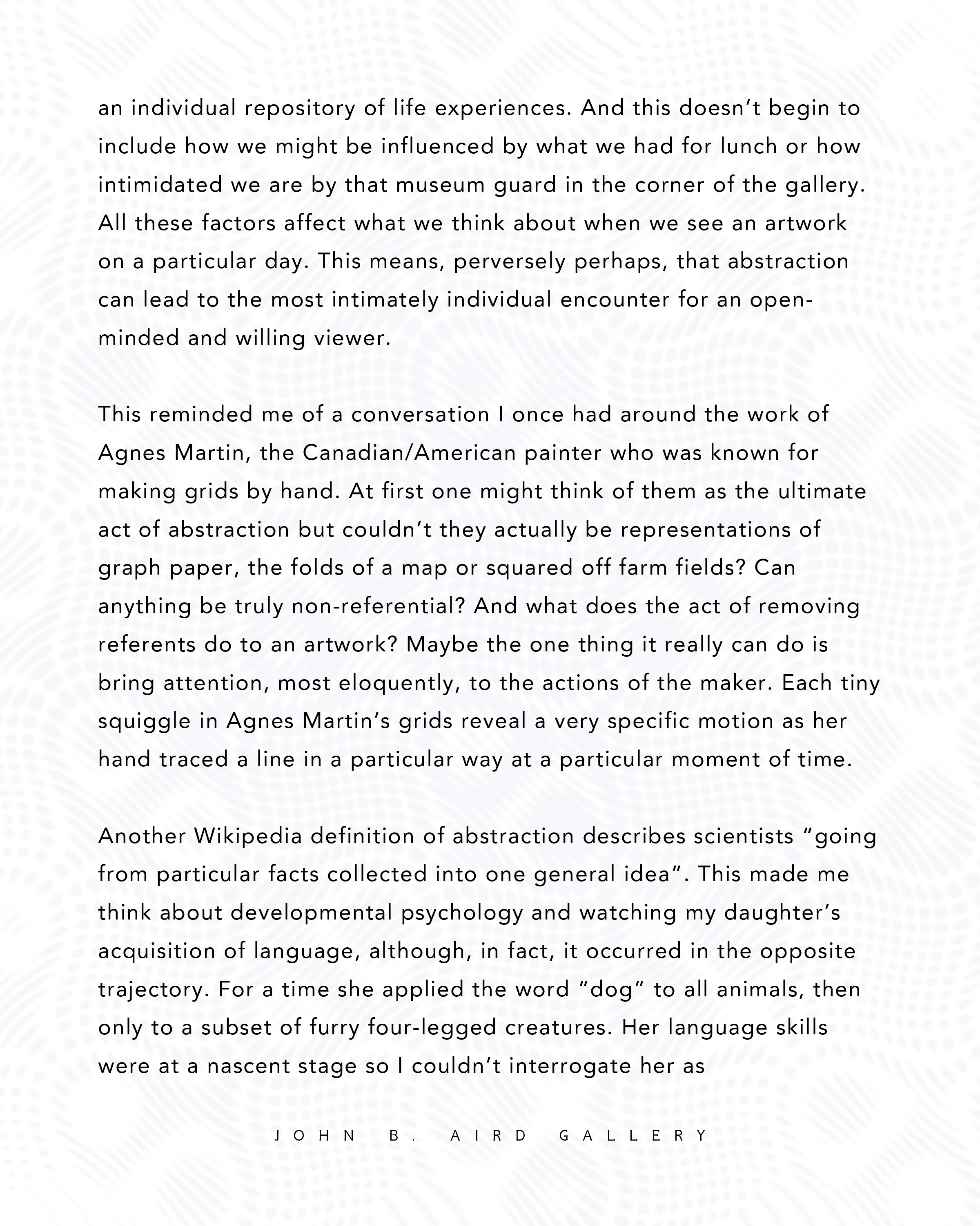 Abstraction endures because it asks us not simply to look, but to engage. Thank you for engaging with the Aird and with our shared commitment to the arts in Ontario.