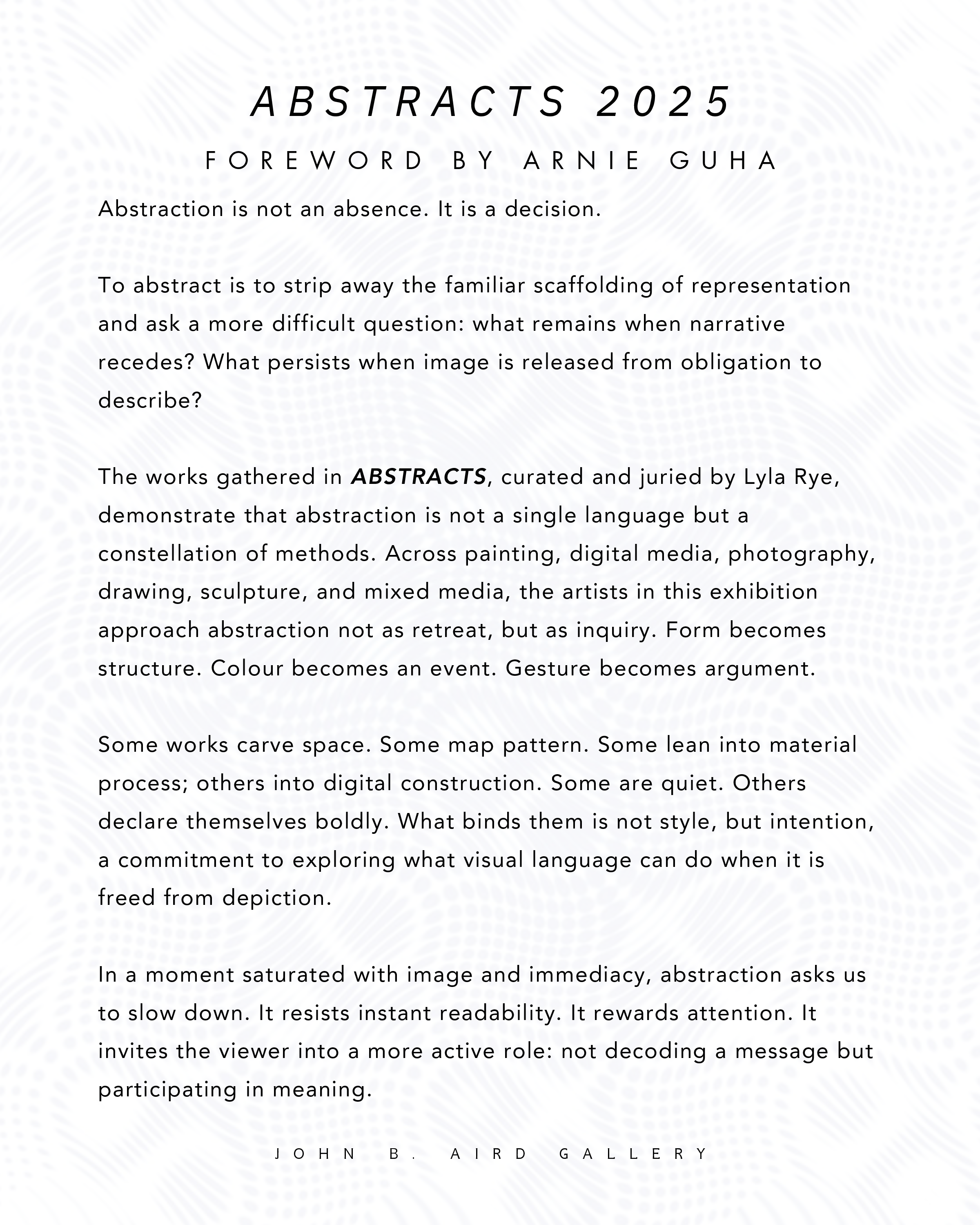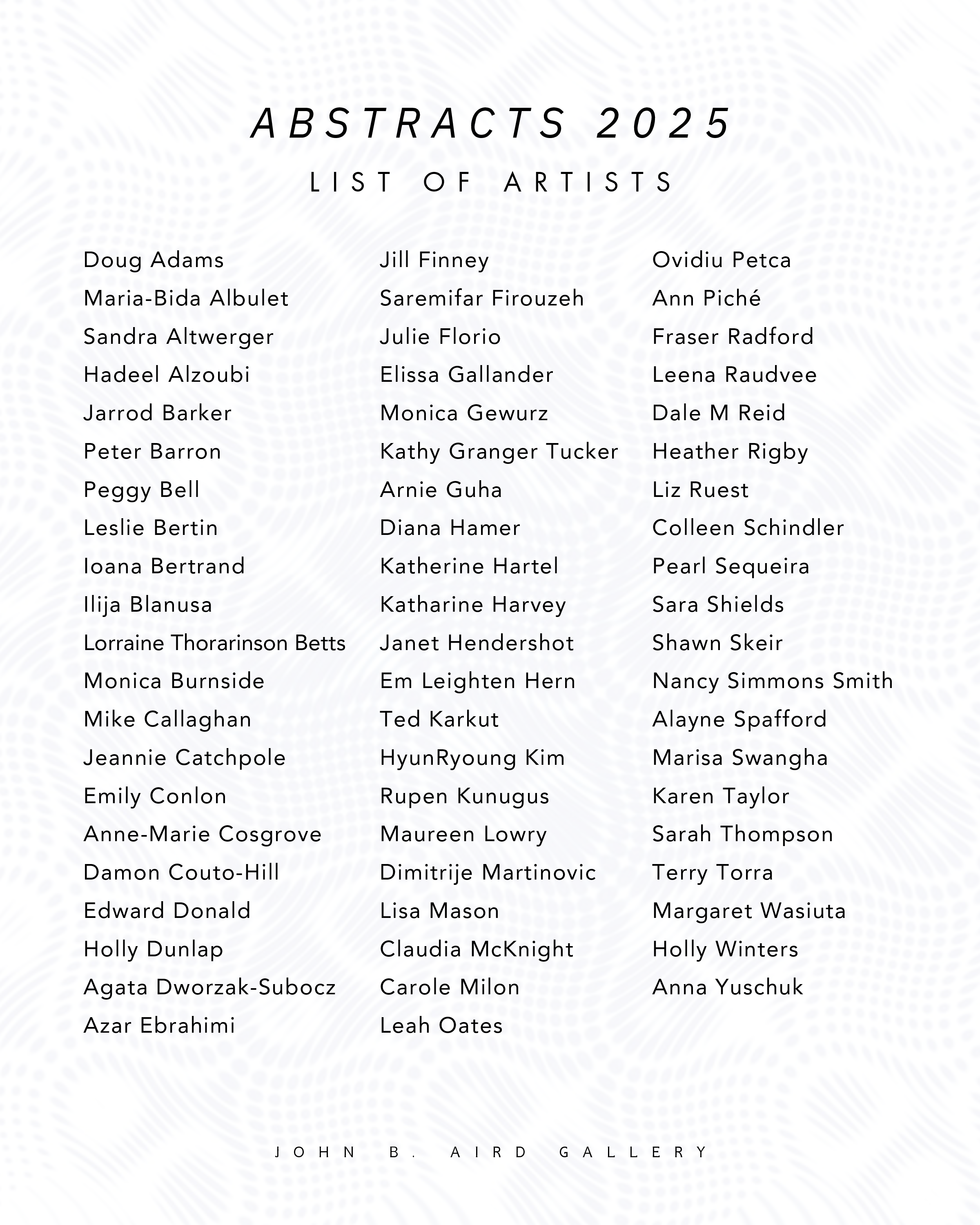 ABSTRACTS 2025 ARTIST LIST