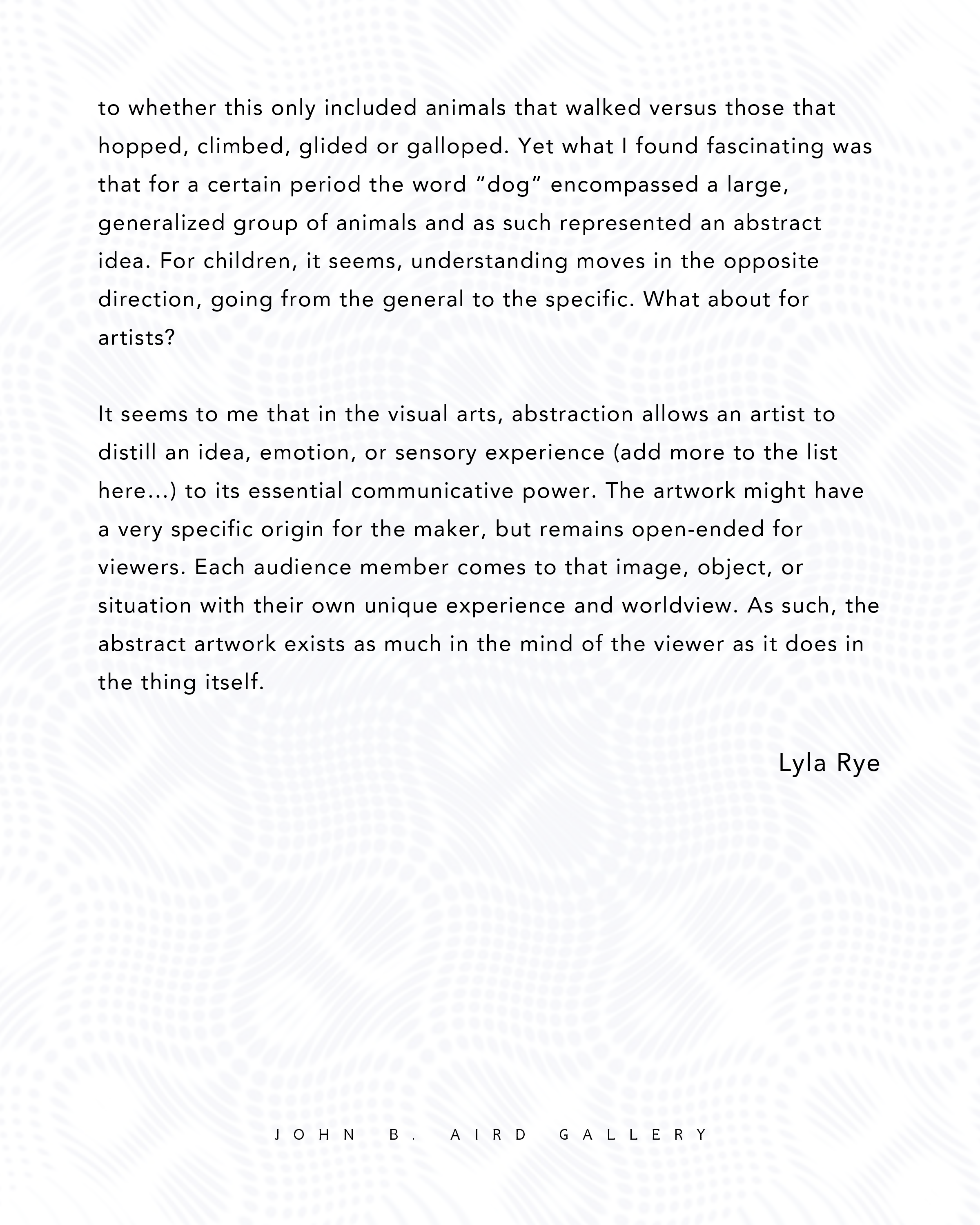 On behalf of the Aird Board and our partner societies, I extend sincere thanks to Lyla Rye for her discernment and generosity in shaping this exhibition, and to all participating artists for the strength and depth of their contributions.